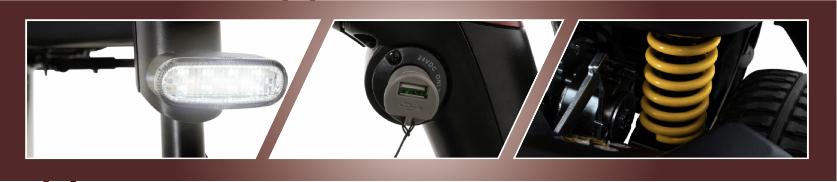 - Komplettes Beleuchtungssystem: LED-Lichter, Blinker und verstellbarer Scheinwerfer.